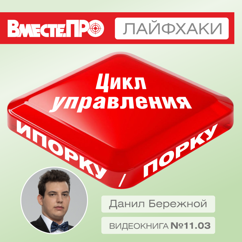 Видео-книга «Цикл управления ИПОРКУ/ПОРКУ» Данила Бережного - позволит оставить бизнес-пожары в прошлом. За 7 шагов книги вы создадите 5 основных документов, с которыми высвободите у себя до 40% времени и сократите потери в 2 раза. Начните наблюдать за движением объектов управления по циклу, стоя в его центре!